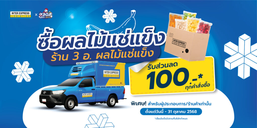 โปรโมชั่นดี ๆ ที่ Inter Express ร่วมกับแบรนด์ 3 อ.ผลไม้แช่แข็งจัดขึ้นเพื่อตอบโจทย์ผู้ประกอบการ, ร้านค้าโดยเฉพาะ พิเศษ! สั่งซื้อผลไม้แช่แข็งในร้าน 3 อ. ผลไม้แช่แข็งวันนี้ รับส่วนลดทันที 100 บาท โปรโมชั่นตั้งแต่วันที่ 1 – 31 ต.ค. 68 ผ่านช่องทางออนไลน์ของ 3 อ. ผลไม้แช่แข็ง ผู้ประกอบการคนไหนกำลังมองหาวัตถุดิบคุณภาพดีอยู่ สั่งเลย การันตีช่วยลดต้นทุน เพิ่มกำไร