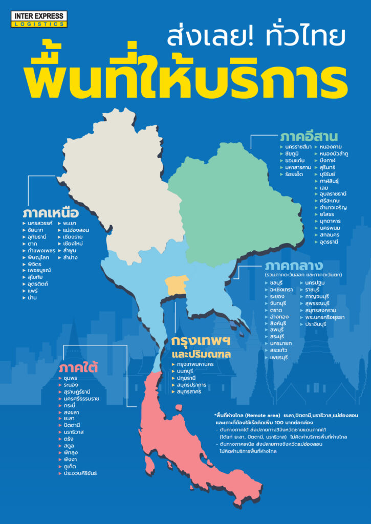 – ต้นทางภาคเหนือ ส่งปลายทางจังหวัดแม่ฮ่องสอน ไม่คิดค่าบริการพื้นที่ห่างไกล