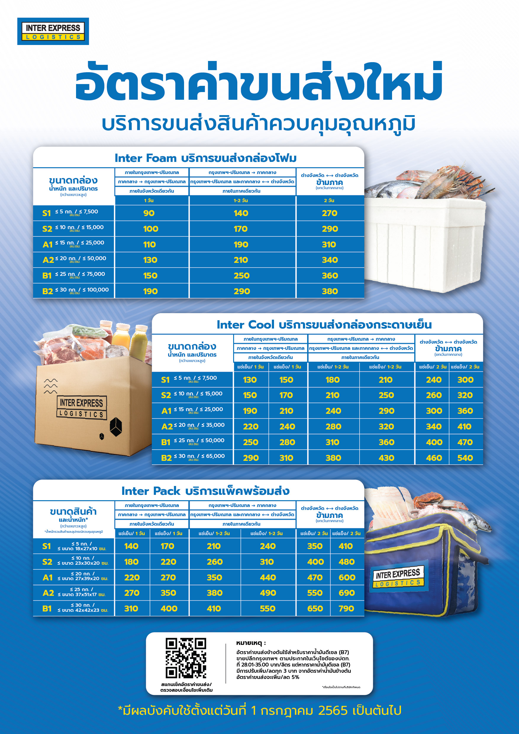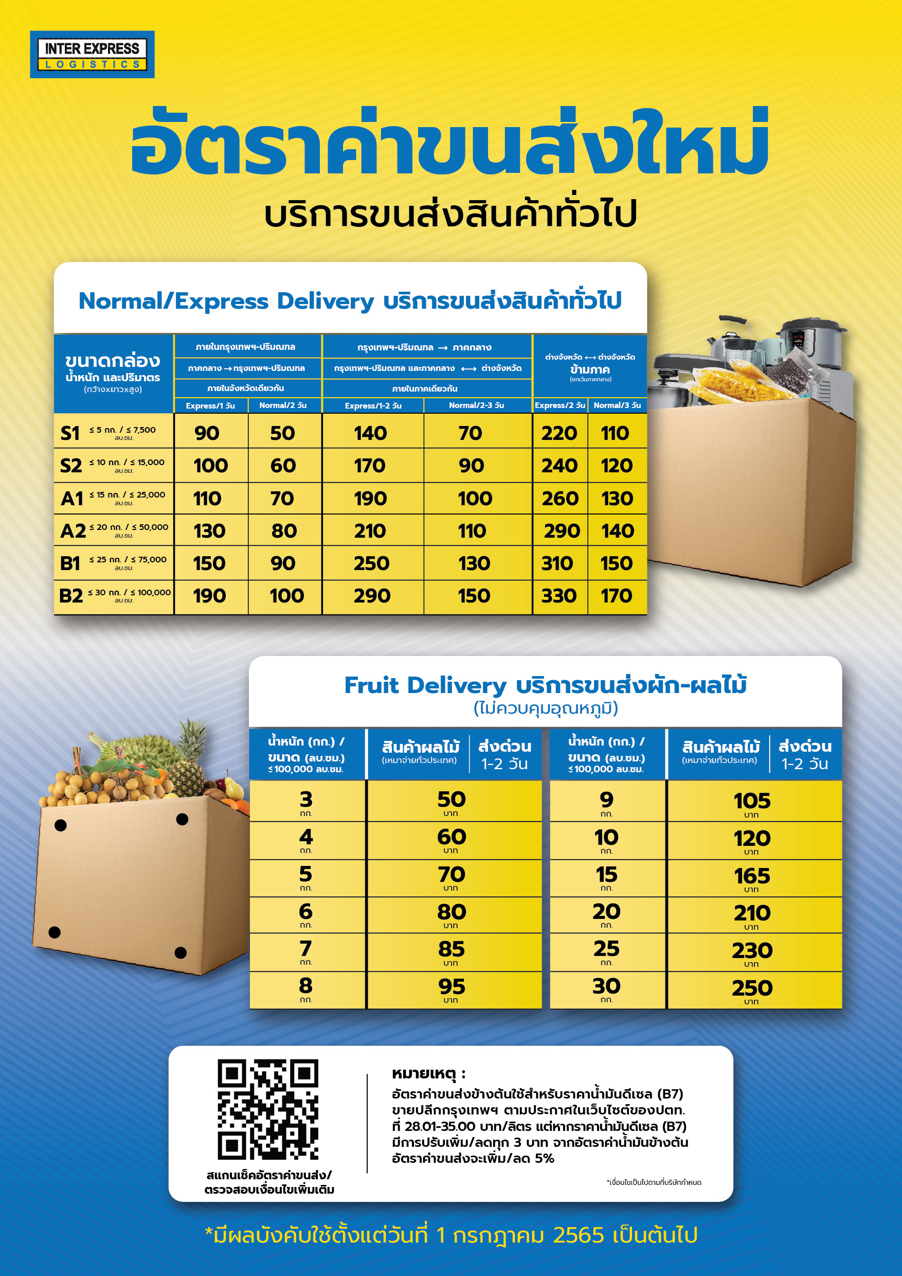 1. อัตราค่าขนส่งใหม่นี้จะมีผลการใช้งานตั้งแต่วันที่ 1 กรกฎาคม 2565 เป็นต้นไป